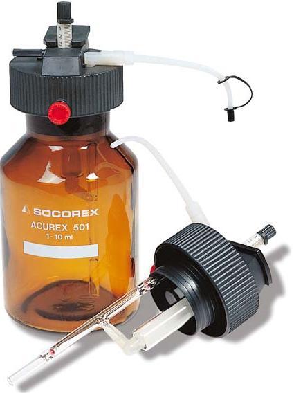 Dispensory řady AcurexTM jsou určeny pro bezpečné, výkonné dávkování reagencí. Jsou vysoce tepelně odolné pro práci ve vodní lázni a vzhledem na své kompaktní složení lehce uskladnit v lednici. Dispensory AcurexTM jsou vyrobeny a testovány za dodržení aktuálních bezpečnostních a výkonostních předpisů pro přístroje. Objemový rozsah od 0,2 do 30 ml. Na dispensory je poskytována 2 - letá záruka. Výhody produktu: - chráněný integrovaný dávkovací mechanizmus uvnitř zásobníku - jednoduchá, robustní konstrukce - zasunovací objemová stupnice redukuje výšku přístroje - všechny průtokové součástky jsou ze skla, bez kovových součástek - výběr ze čtyř velikostí zásobníků - komplet autoklávovatelné při teplotě 121°